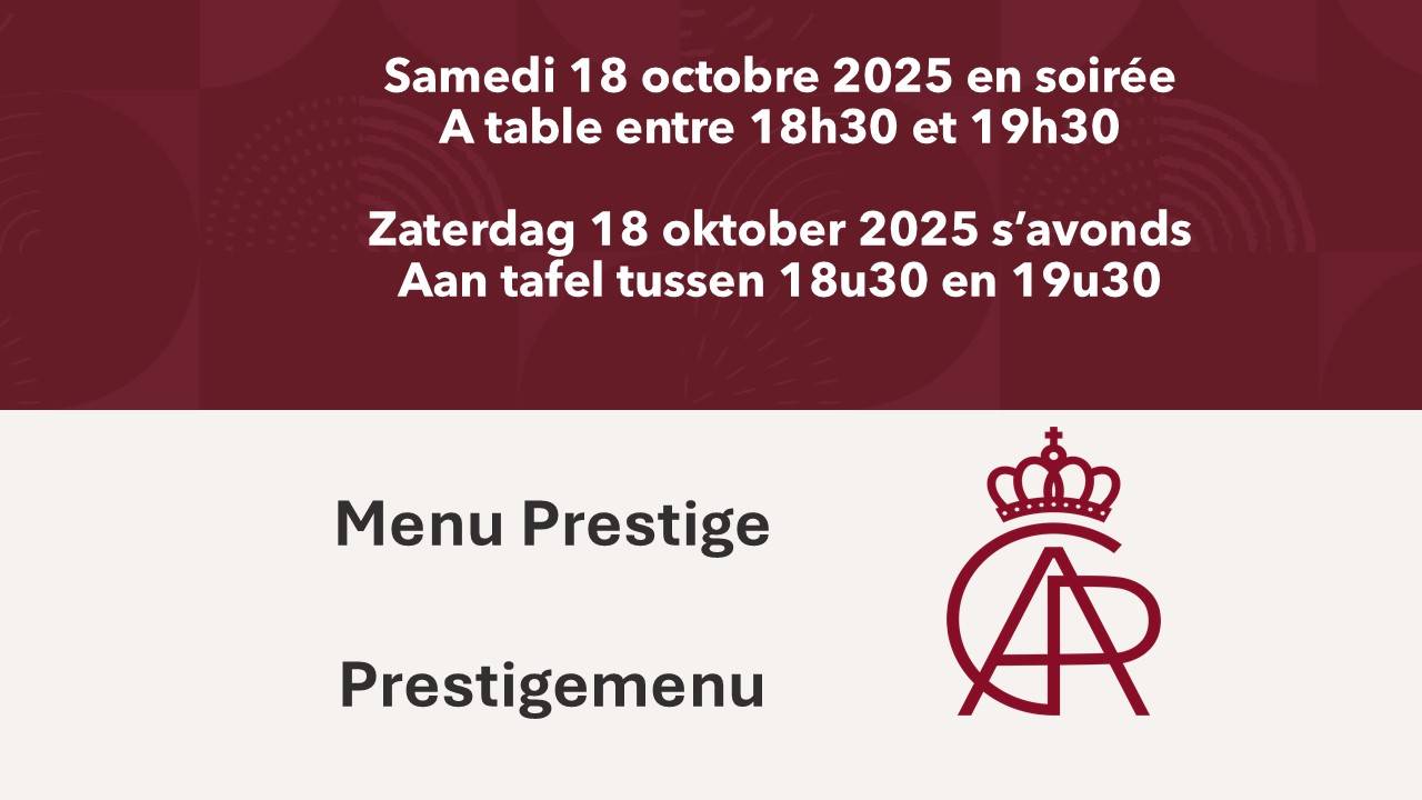 Club Prince Albert nodigt u van harte uit om op zaterdag 18 oktober 2025 vanaf 18u te komen genieten van een prestigemenu.